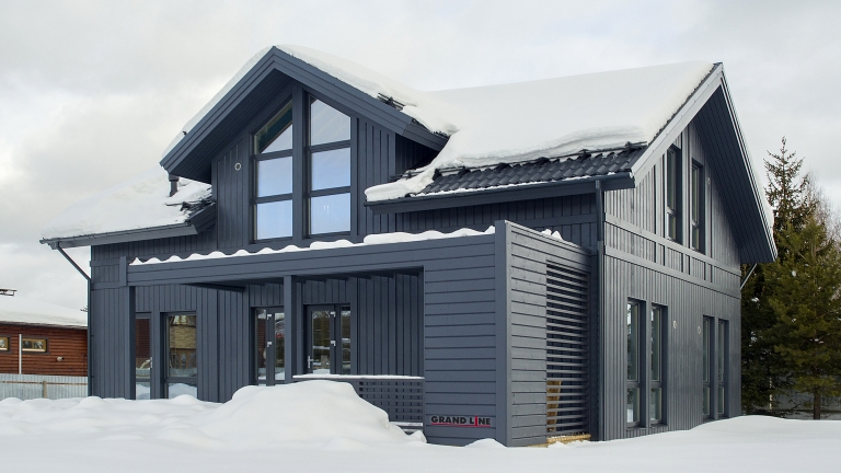 • При использовании покрытия Colority® Print, «ЭкоБрус GL» достигает максимального сходства с клееным брусом. Надежное скрытое сцепление панелей придает фасаду здания естественный вид.