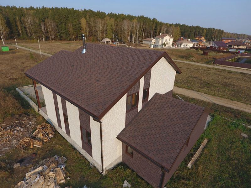 Черепица в глубоких темно-каштановых оттенках отлично подойдет для кровель большой площади и сложной конфигурации. Оригинальность покрытию придает несимметричный перехлест лепестков и выразительный 3D-эффект. Кровля хорошо смотрится с фасадами, выполненными в сливочных, карамельных, фисташковых, терракотовых тонах.
