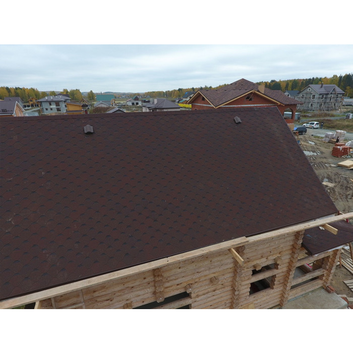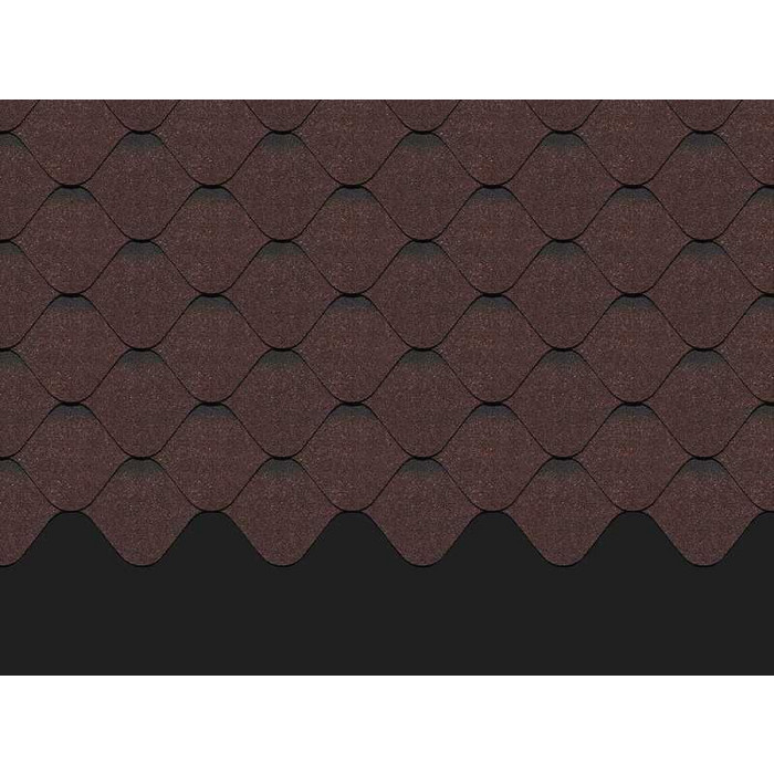 Глубокий шоколадный цвет эффектно подчеркивает оригинальную форму лепестков гонтов. Черепица с первого взгляда захватывает внимание. Она отлично сочетается с фасадами в сливочных оттенках, под сланец, песчаник, мрамор, клинкерный кирпич.