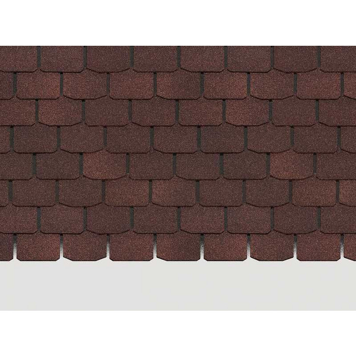 Глубокий темно-коричневый цвет подчеркивают эффектные переливы оттенков и благородный матовый блеск. Традиционная форма лепестков гонтов позволяет использовать черепицу для оформления многоскатных кровель. Хорошо сочетается со светлым сайдингом тёплых оттенков, фасадными панелями под камень и кирпичную кладку.
