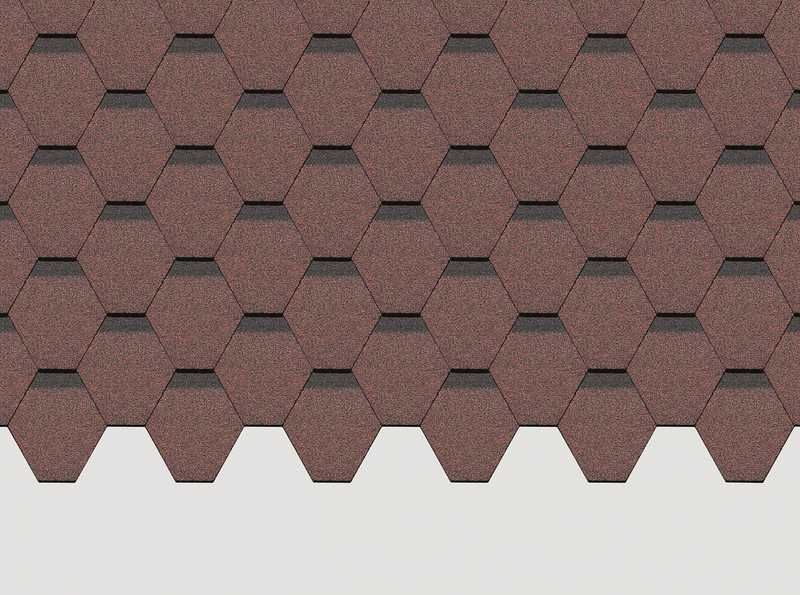 Красная черепица с лепестками гексагональной формы сделает выразительной кровлю простой формы и подчеркнет оригинальность сложных проектов. Она особенно хорошо смотрится с нейтральными бежевыми оттенками и светлыми фасадными панелями под камень.