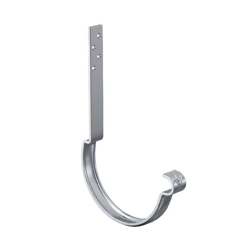-Задний замок выполнен со смещением, что позволяет обеспечить наличие вентиляционного зазора между желобом и лобовой доской -Увеличенное «монтажное плечо» крюка (160 мм – длинный крюк; 230 мм – удлиненный крюк) удобный монтаж на разные уклоны крыши-Дополнительное ребро жесткости,  увеличивающее прочность и надежность крюка-Особая марка стали повышенной прочности, цельнометаллическая полоса толщиной 4 мм с оцинковкой 275 г/м.кв.-Уникальность подтверждает фирменный штамп «лилия» расположенный в передней части.