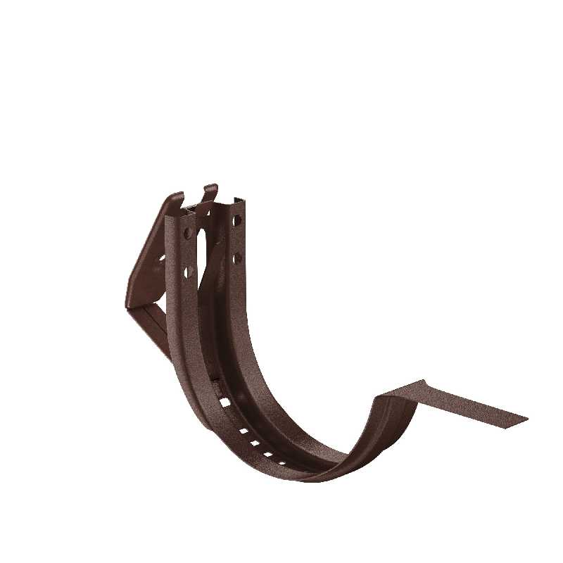 Крюк крепления регулируемый (в комплекте)Данный элемент имеет возможность регулировки угла наклона и позволяет производить монтаж водосточного желоба на лобовую доску с уклонами отличными от 90 градусов.