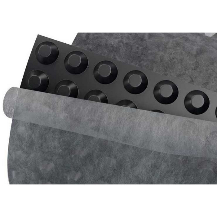 Мембрана Максистуд Гео из полиэтилена высокой плотности с геотекстилем и равномерно размещенными по всей площади выступами в форме усеченных конусов высотой 20 мм и перфорацией, которая обеспечивает лучшую дренажную способность материала. Применяет…Подробное описание