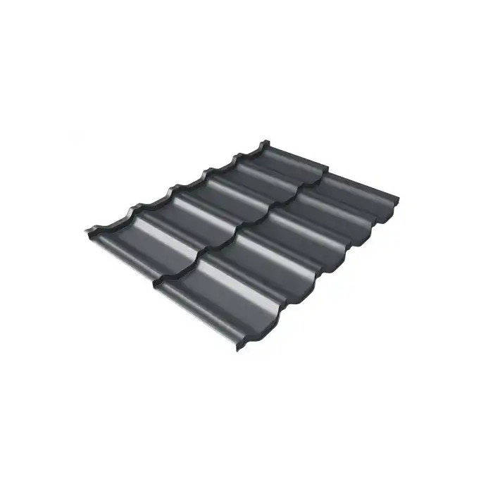 Металлочерепица Grand Line Kvinta Uno 0,5 PurPro Matt RAL 7024 Мокрый асфальт | c 3D резом