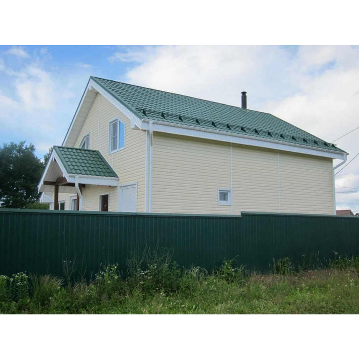 - Кровля защищена от физических повреждений, поскольку в основе металлочерепицы сталь толщиной 0.45 мм (с учётом металла, цинкового и декоративно-защитного покрытия).