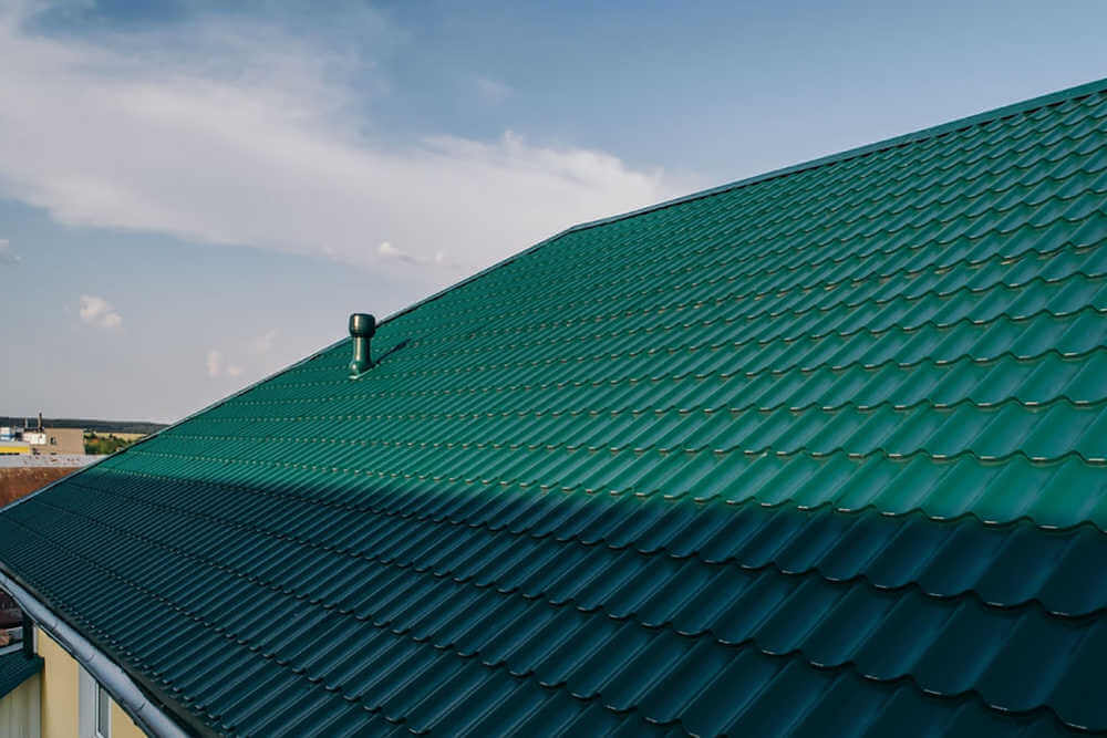 • Кровля защищена от механических воздействий, так как в основе металлочерепицы сталь толщиной 0.45 мм (с учётом металла, цинкового и полимерного слоя).