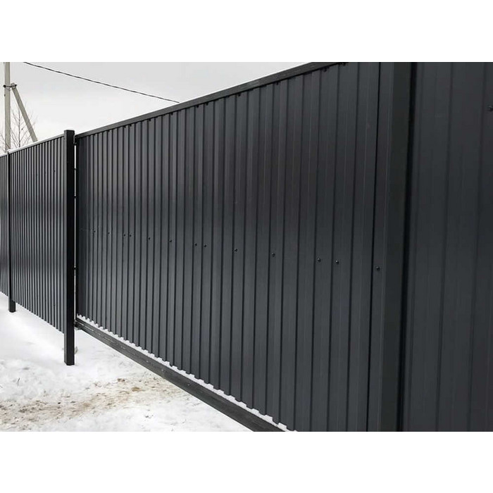Популярное бюджетное решение для ограждающих конструкций. Профнастил и стальной штакетник в двустороннем покрытии Полиэстер (матовый) красиво выглядят с внешней и изнаночной стороны. Ограждение из такого материала не горит, не гниёт, его не надо красить и защищать от древоточцев.
