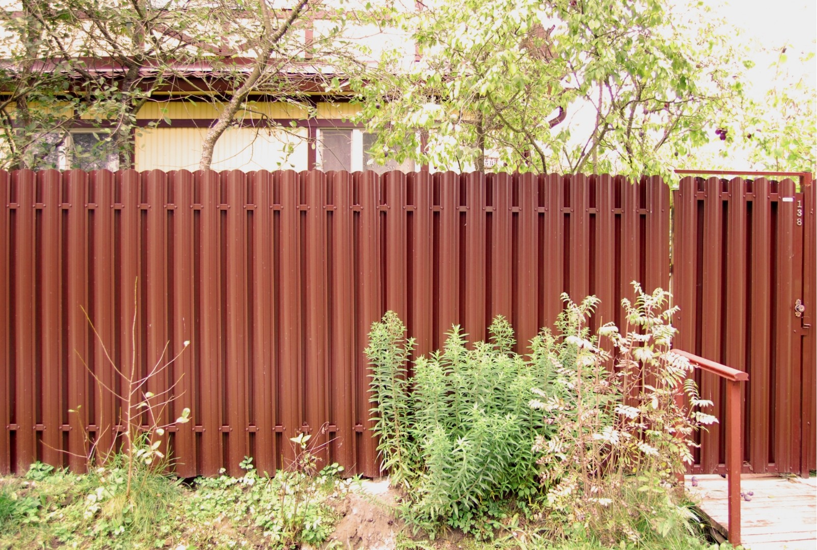 Стальной штакетник — современный материал для строительства заборов. Это металлические рейки, обработанные покрытием Викинг цвета 3005 Красное вино. Реалистично имитирует деревянный забор, но значительно практичнее: не выцветает, не требует периодической обработки лаком, противостоит влиянию окружающей среды и т. д. Штакетник стальной покрыт плёнкой для защиты от повреждений при транспортировке, которую нужно удалить в процессе монтажа.