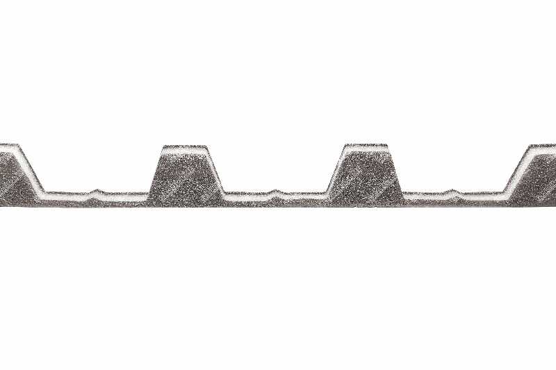Профильный уплотнитель производится из вспененного полиэтилена, что обеспечивает тепло и шумоизоляцию, предохраняет от попадания влаги и пыли. Такой уплотнитель коньковый для профлиста повторяет форму основного укрытия кровли - профнастила/металлочерепицы.