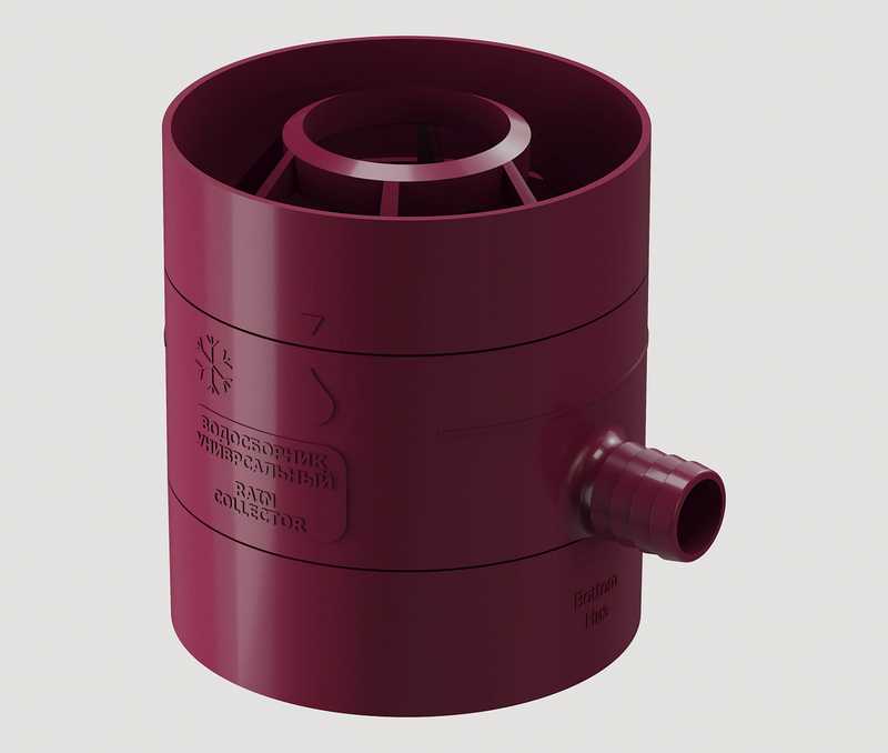 Универсальный водосборник предназначен для водостоков красного цвета серии STANDARD. Также возможна комбинация с оттенком «Гранат» из коллекции PREMIUM.