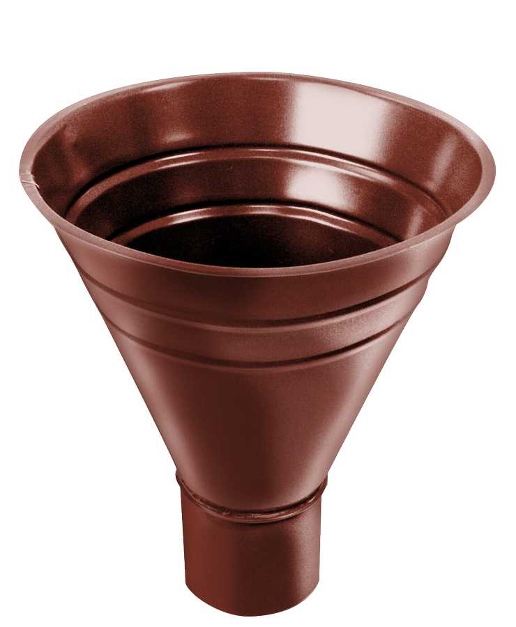 Воронка водосборная предназначена для сбора воды в том случае, когда сток не организован посредством желоба, а осуществляется по ендовам (сложные формы крыш).